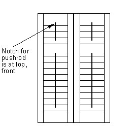 3. Install shutter panels with the "notch" for the pushrod at the top. When installed, the pushrod faces the room. (See figure below, left.)
