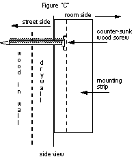 Please Note: Screws must be firmly set, and must anchor in wood or other structural material. DRYWALL (SHEETROCK) AND PANELING WILL NOT SUPPLY ADEQUATE STRENGTH IN MOUNTING, AND PRESENT A DANGER OF INJURY AND/OR DAMAGE. Your mounting strip must be attached to wood, through drywall into wood, or to other secure material.
