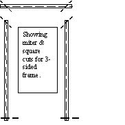 4. Each piece of mounting strip is precisely cut. (See figure above, right.) The 2 side pieces are "square" cut at the bottom, and "miter" cut (45 degrees) at the top. The top trim piece is miter cut on both ends. (Note: café style, covering the lower part of the window only, has no top trim piece, and the side pieces are square cut on all ends.)
