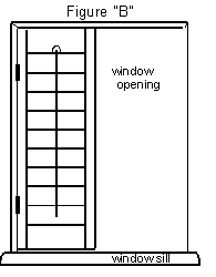 7. Place the frame (usually done without the shutters in place... remove hinge pins) in the window. The mounting strip should be attached to the jamb with screws as shown in the drawing at the top of the first page. We recommend that you "counter-sink" the screws so when installation is complete the heads of the screws will be out of sight below the surface of the strip.