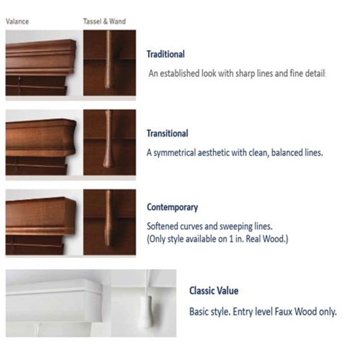 In addition to premium features like a cordless lift and motorized tilt upgrade, LEVOLOR Faux Wood offers easy customization. You can choose from three distinct style packages complete with coordinating decorative valance, wand, and tassel, to compliment your home’s interior.