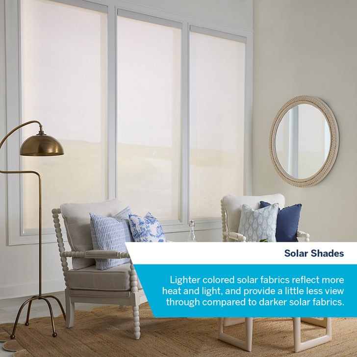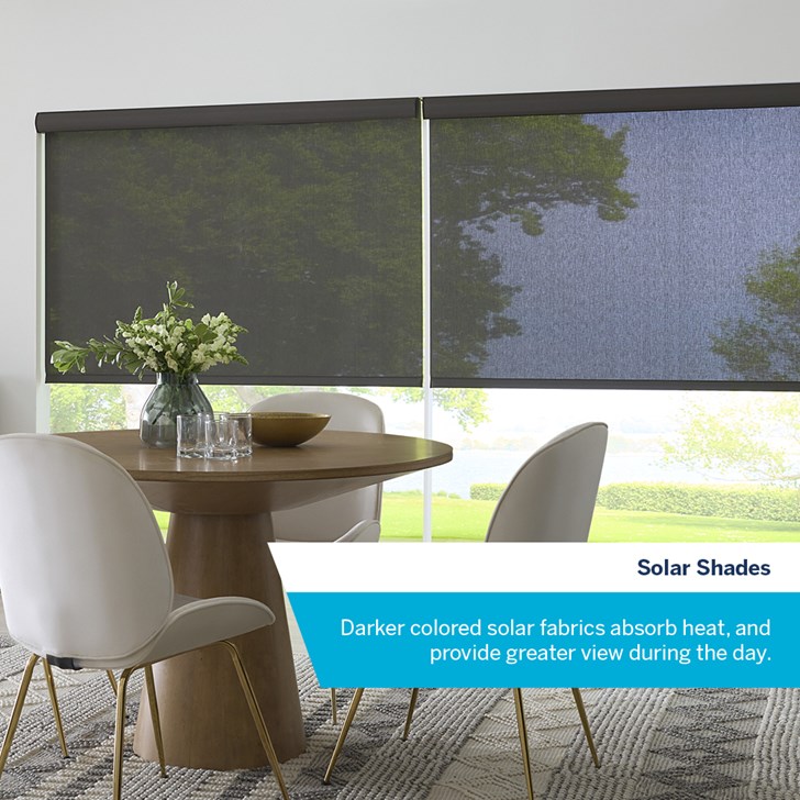 Transform your home with LEVOLOR® Solar Roller Shades where style meets function. These shades not only reduce glare and block UV rays but also maintain your outdoor view, making them a perfect addition to bright spaces like living
