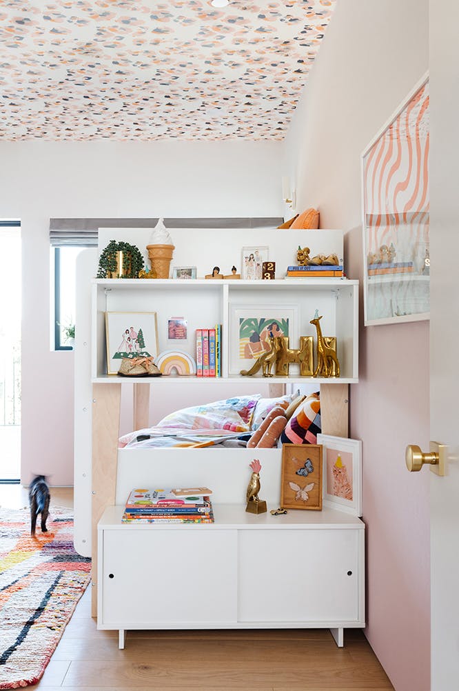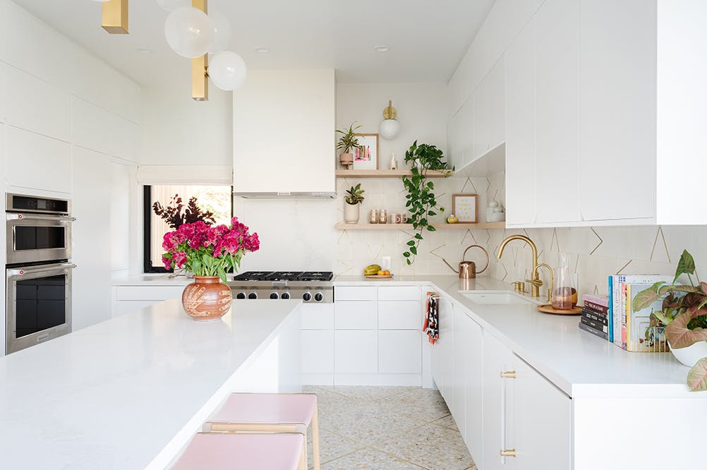 We've only seen sneak peeks since the family moved in at the very beginning of quarantine. But from what she has revealed, we can tell that Joy has brought the fun with terrazzo floors, colorful patterned tile, and LOTS of wallpaper. Plus, it wouldn't be a modern California home without lots of windows to soak up the sun.