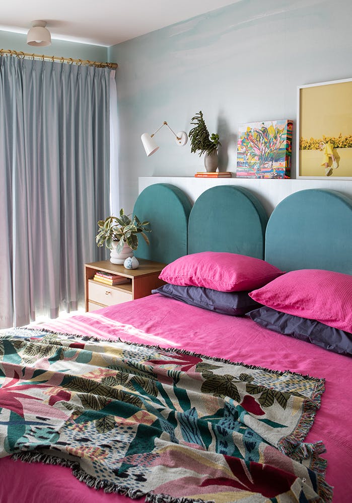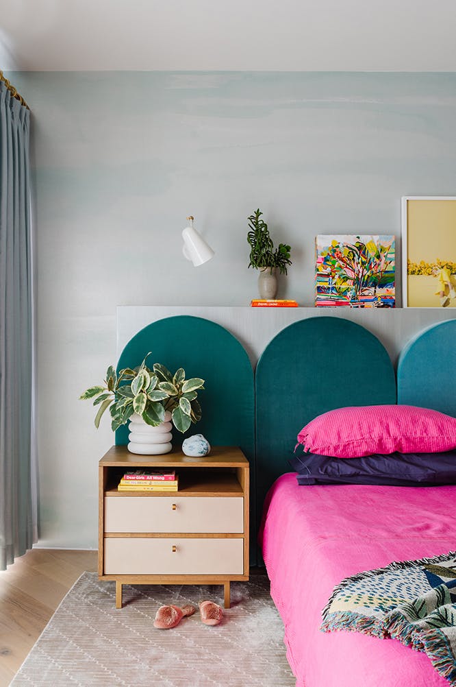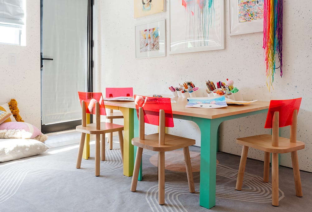 It should come as a surprise to no one that Joy infused the home design with lots of color, cheerful patterns and her signature mid-century inspired aesthetic. Her goal for the home was to make the most of LA's natural light and have lots of indoor/outdoor living space for her family of four.