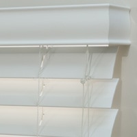 Choose Bali 2 1/2 Inch Composite Blinds to bring an elegant, upscale look that mimics shutters on your windows. Select from a number of colors perfect for matching wood décor or standard paints. Contoured slats are engineered to resist cracking, staining, or peeling even in high humidity areas or rooms with direct sunlight. Cordless lift included.