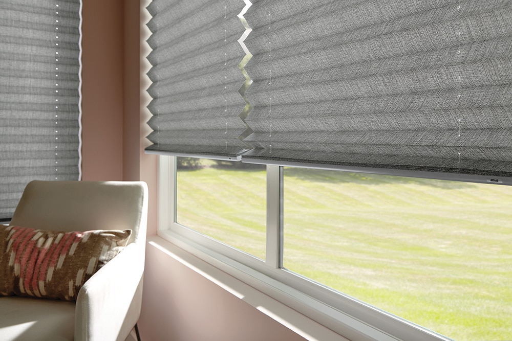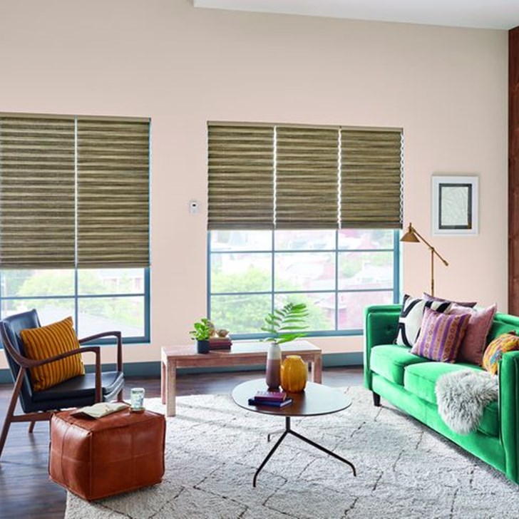 Bali® 2" Pleated Shades feature bold, wide pleats ideal for larger windows, offering a clean, tailored look. Customize with a variety of colors, patterns and optional liners for added privacy and light control. Cordless design adds safety and style.