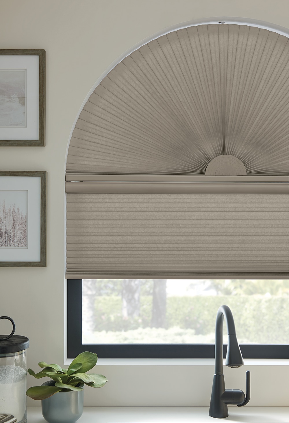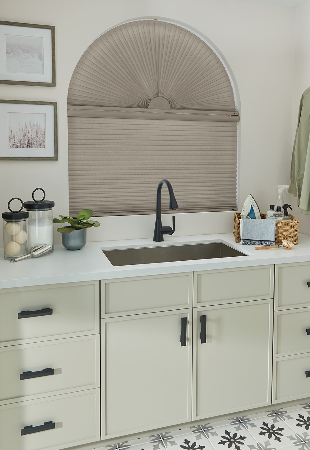 Get the perfect solution for hard-to-fit arches, one that insulates your windows while adding beauty to your home. These beautiful arches, made of a soft-spun material, are a stylish choice for pulling together the look of your windows and coordinate with Light Filtering Shades.