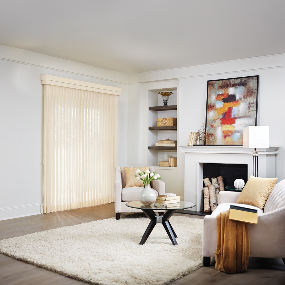 Get the elegant look of drapes and the convenience of blinds with Bali Sheer Enchantment Vertical Sheer Shades, available in beautiful pastel colors and textures designed to complement your décor.