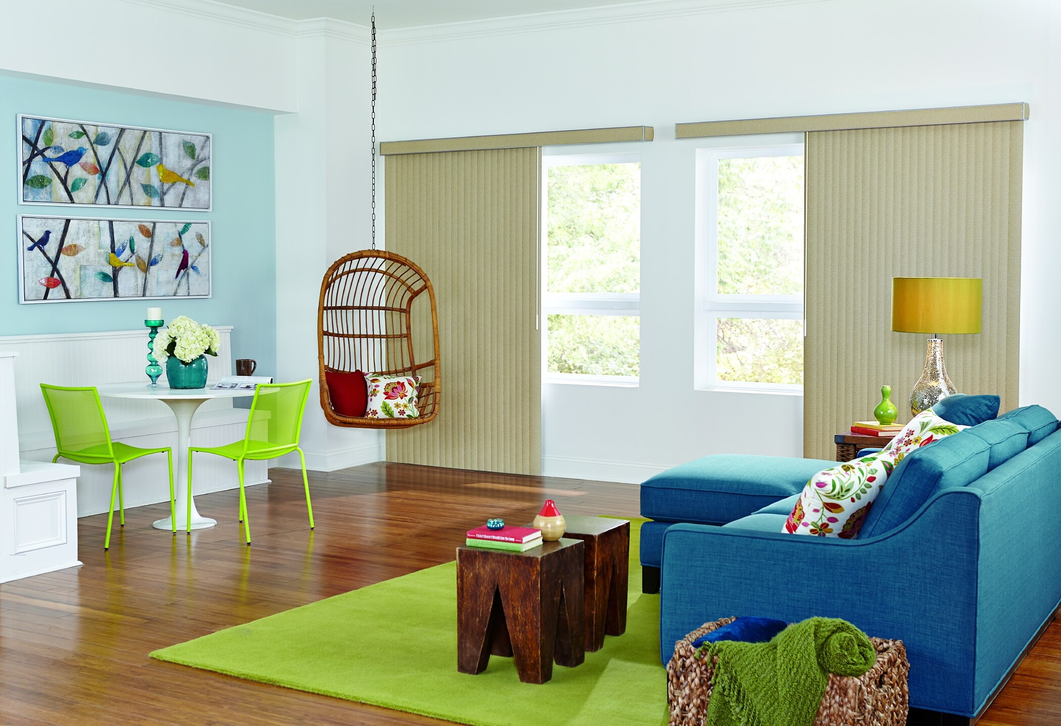 Bali Vinyl Vertical Blinds add a high-design look to picture windows and sliding glass doors, while also providing privacy and light control.