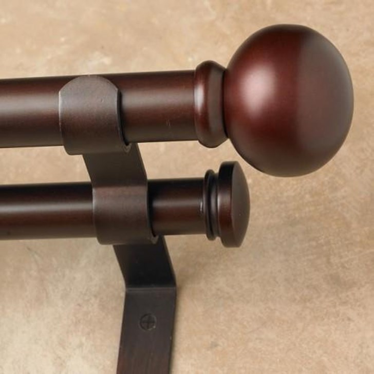Use double rods to hang two different draperies in tandem (e.g., an opaque drape over a sheer one).
