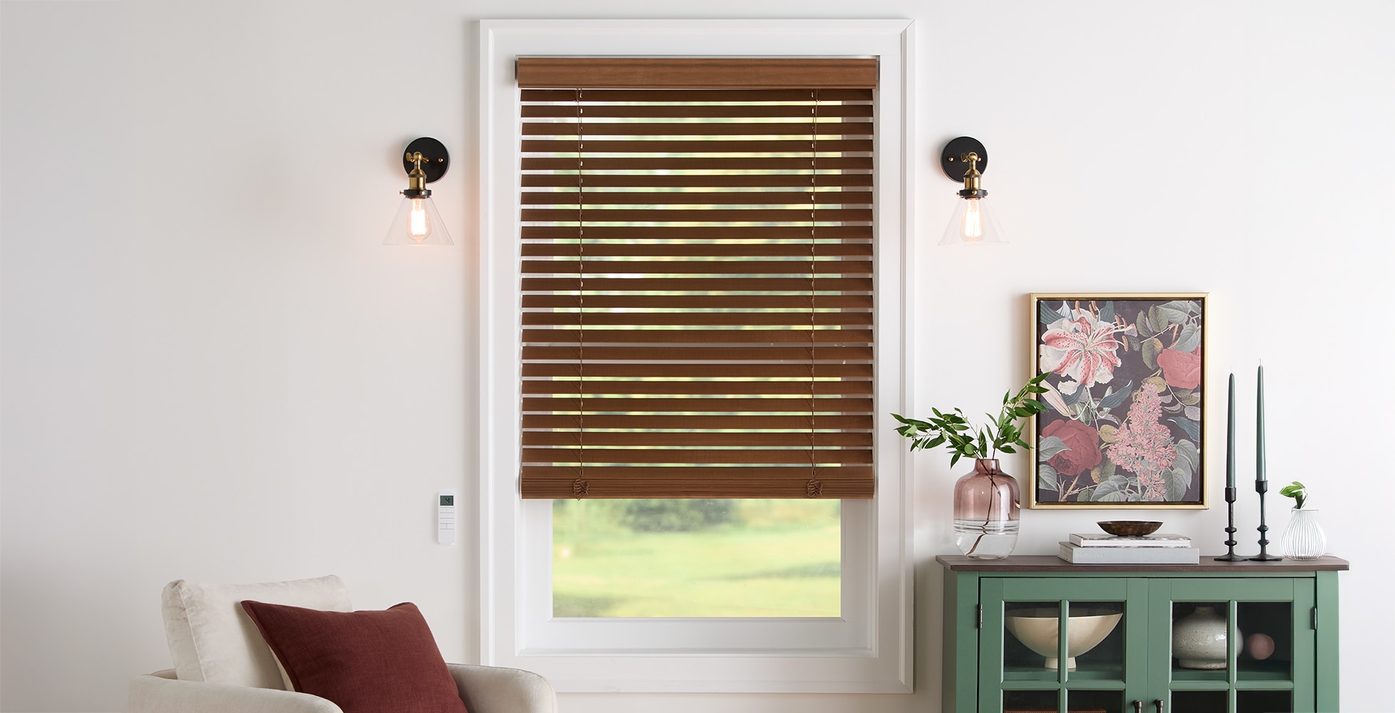 Our 2 Inch Premier Wood Blinds grant your windows an upscale look without the hefty price tag. Created from authentic basswood, these blinds boast a robust grain that is safeguarded by a UV-resistant coating. They come in a vast array of contemporary and classic finishes, both painted and stained, designed to complement your trim, furniture, and flooring. These blinds also offer durability and user-friendliness, with a trapezoidal bottom rail for improved slat closure and an easy lift cordless option. They can be perfectly paired with Blinds.com Premium Wood Blinds for a unified look in your home.