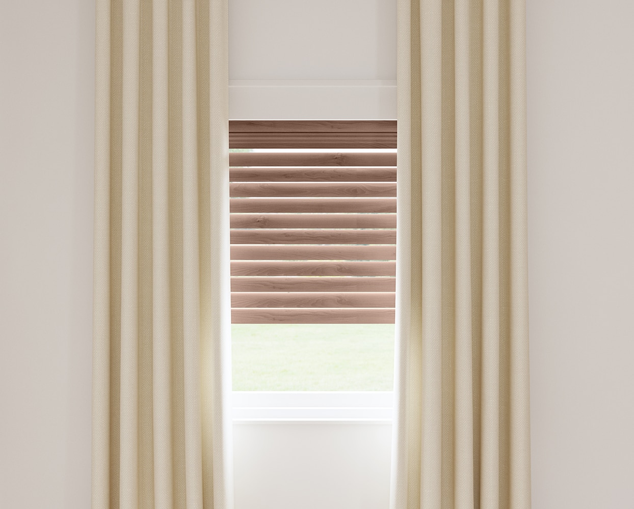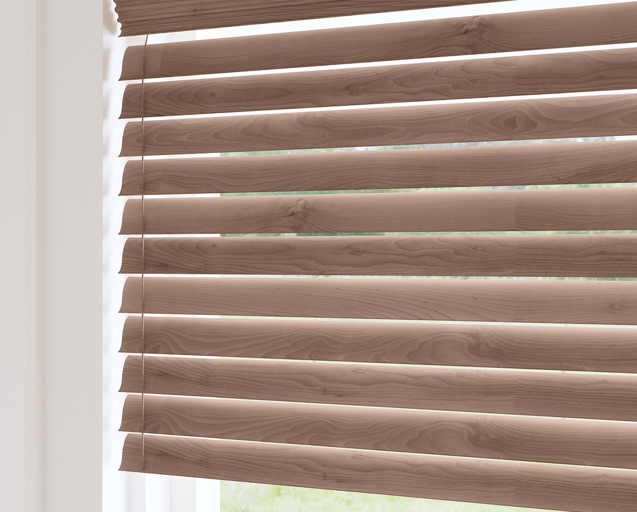 Affordable cordless faux wood blind option offered in modern, popular colors.