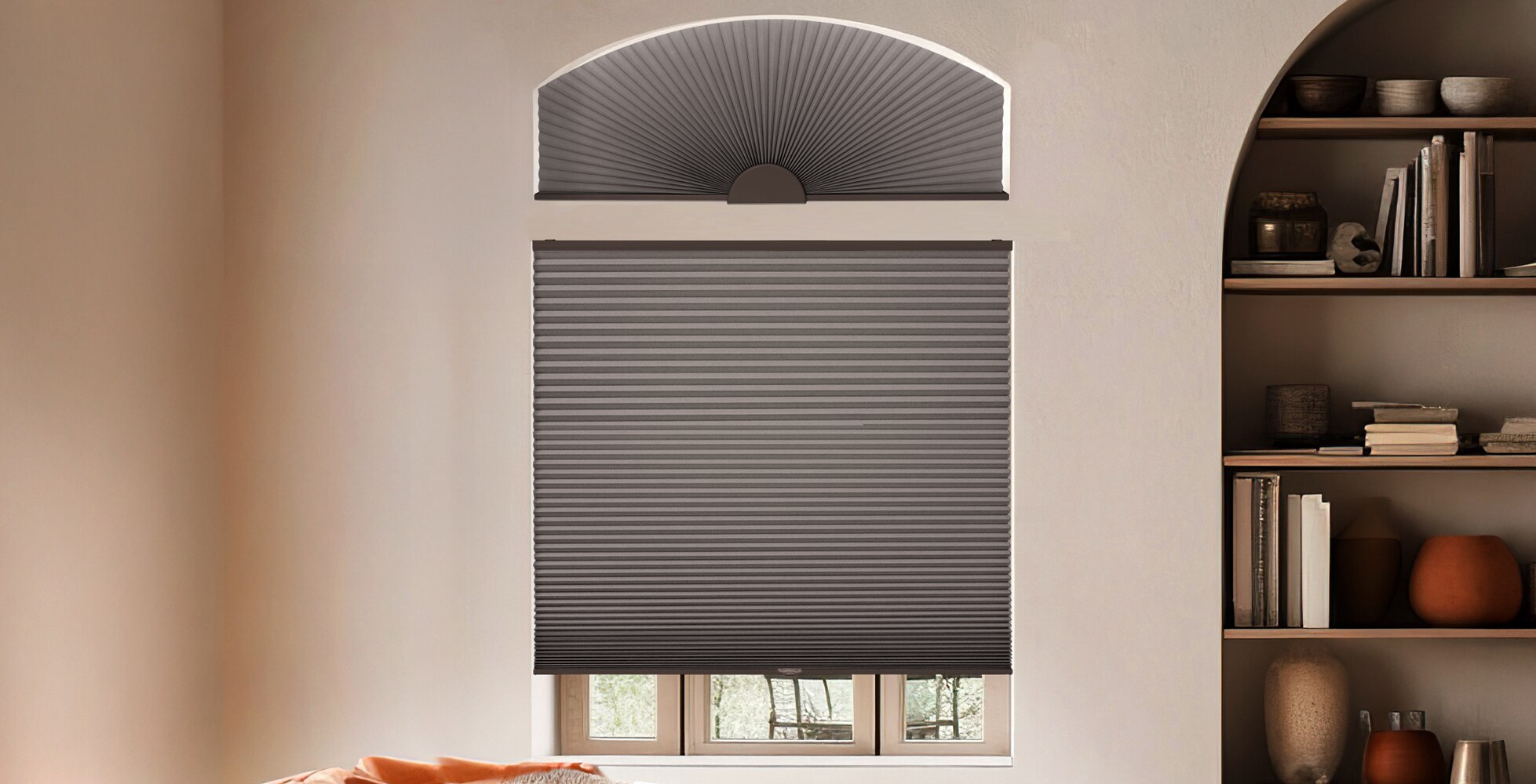 The Blackout Cellular Arch from Blinds.com blocks glare insulates your window and adds decorative appeal to the typically hard-to-cover window arch. These shades are the perfect solution for dressing Arches and are as striking as they are affordable.