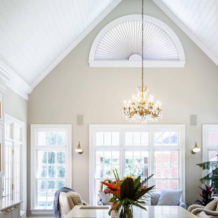 The Blackout Cellular Arch from Blinds.com blocks glare insulates your window and adds decorative appeal to the typically hard-to-cover window arch. These shades are the perfect solution for dressing Arches and are as striking as they are affordable.