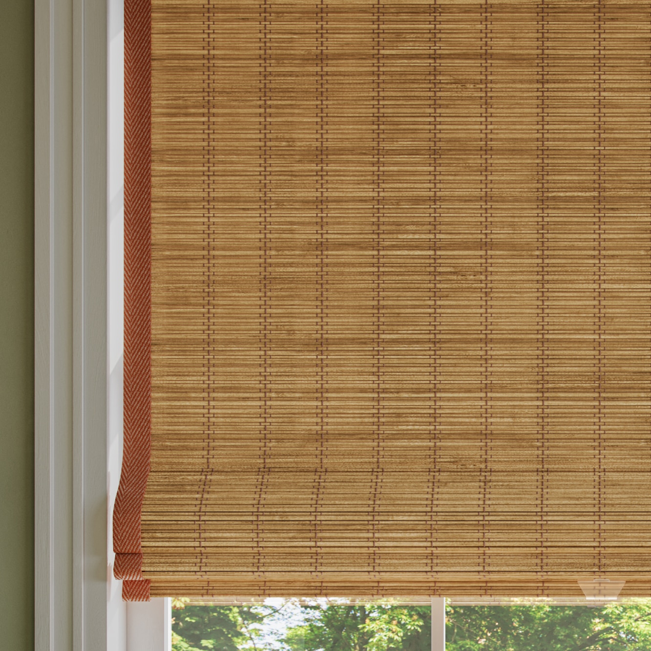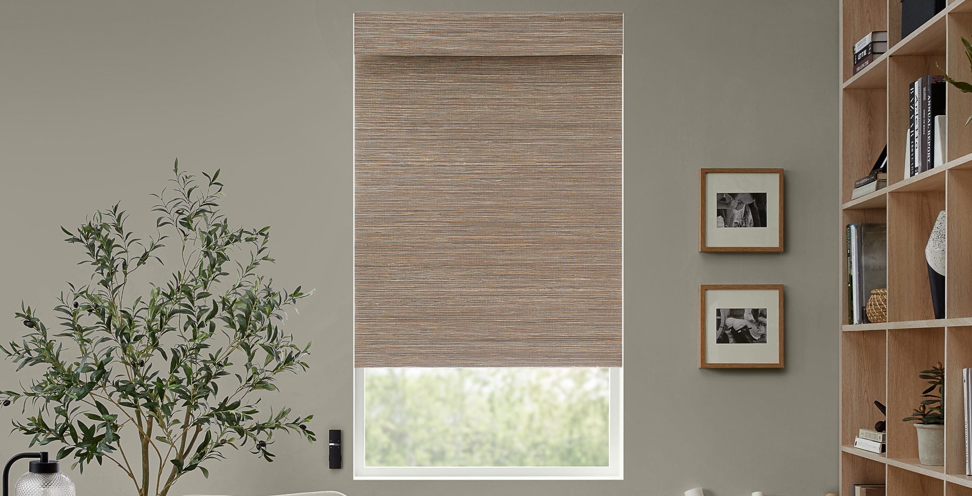 Blinds.com Blackout Woven Wood Shades are expertly handcrafted from exotic reeds, woods, grasses and textures, adding natural elegance to any room. These shades feature a blackout liner and are available in a sleek waterfall style or with decorative valance for maximum customization.