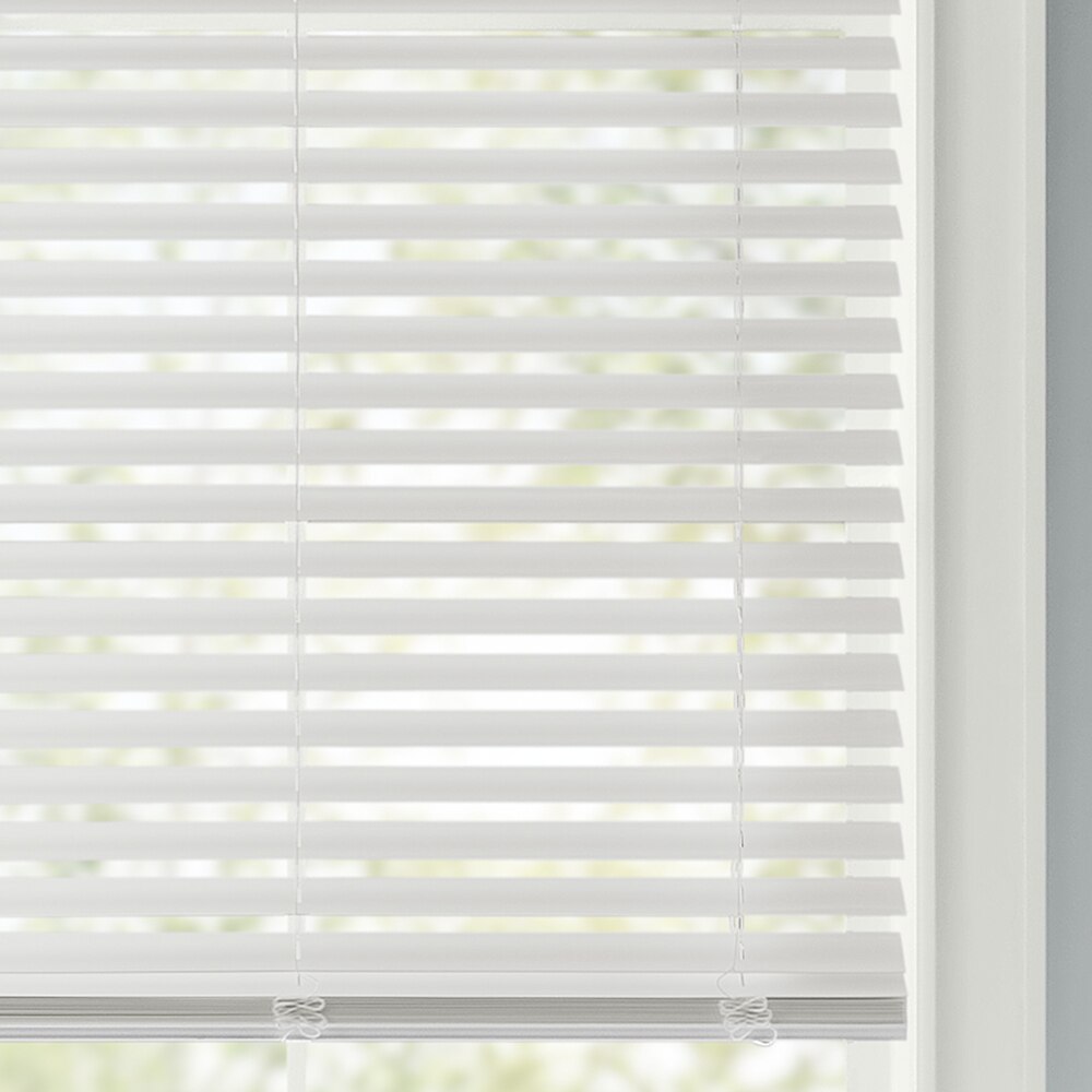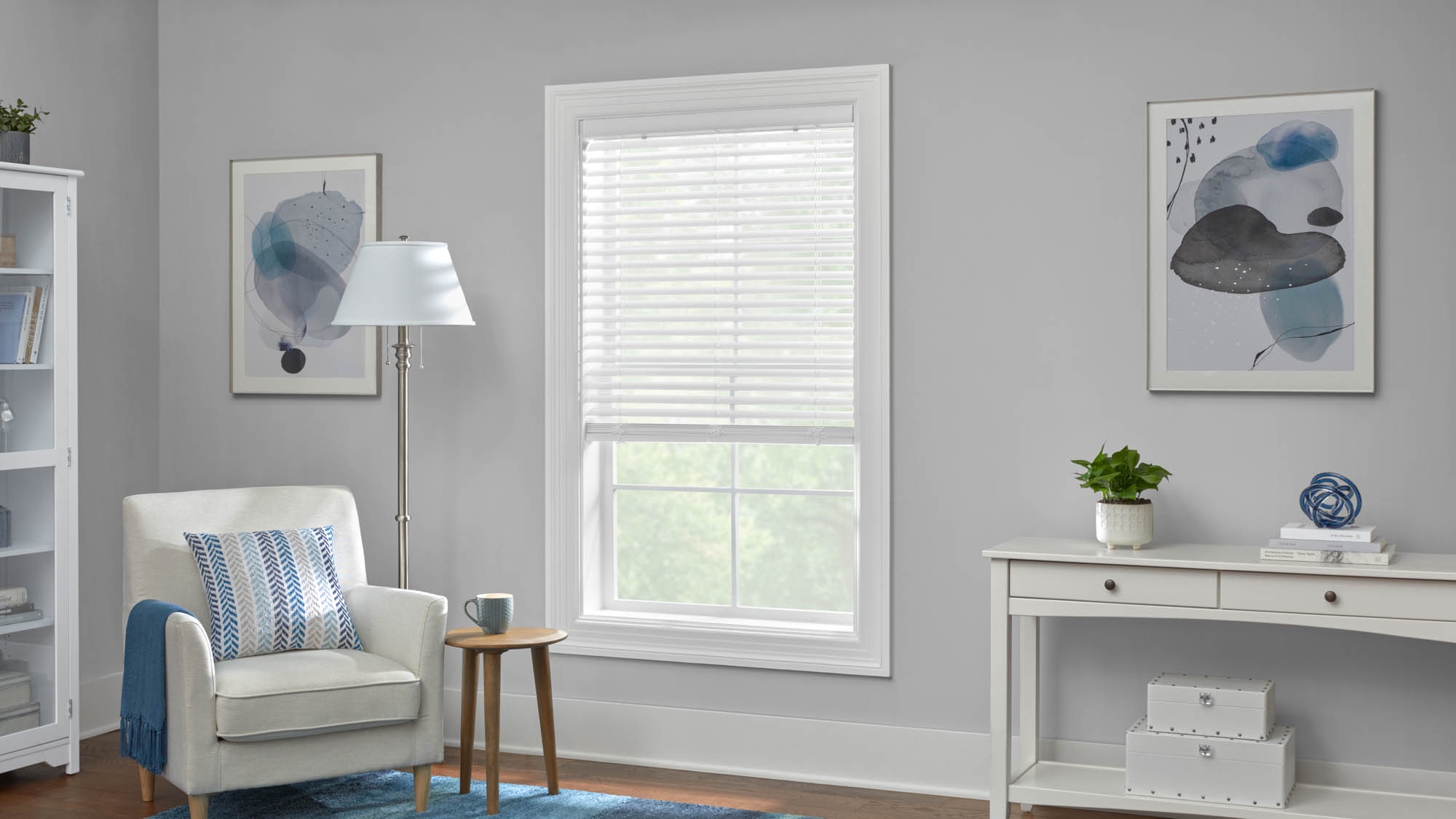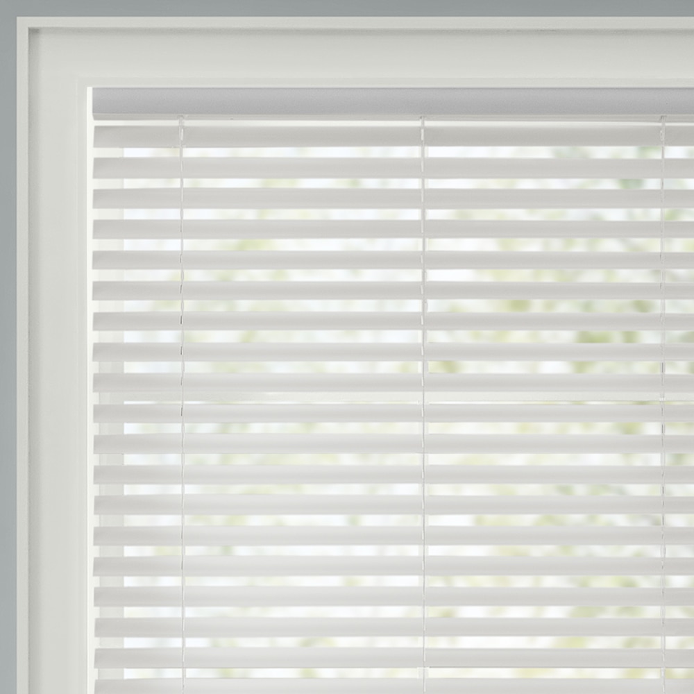 Modern, clean, and super easy to operate, the Blinds.com Cordless S-Curve 2 inch Faux Wood Vinyl Blinds are also safer for kids and pets. These blinds give any room the look of a contemporary white 2" wood or faux wood blind with a true worry-free operating system.
