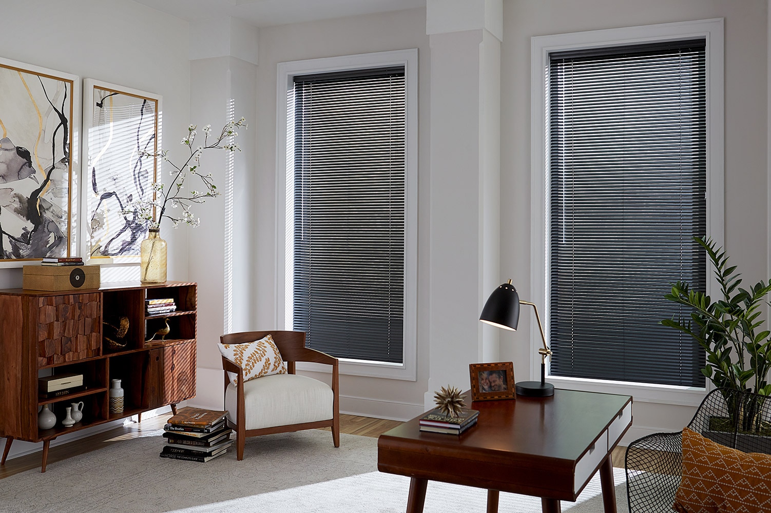 Looking for high style at a low cost? Blinds.com Premium 1 Inch Mini Blinds are available in popular, modern colors and offer cordless lift with the option to upgrade to motorization - these options further enhance its stylish look and the absence of hanging cords is safer for kids and pets. Each blind includes a color-coordinated, small profile headrail, slats, cords and bottom rails.