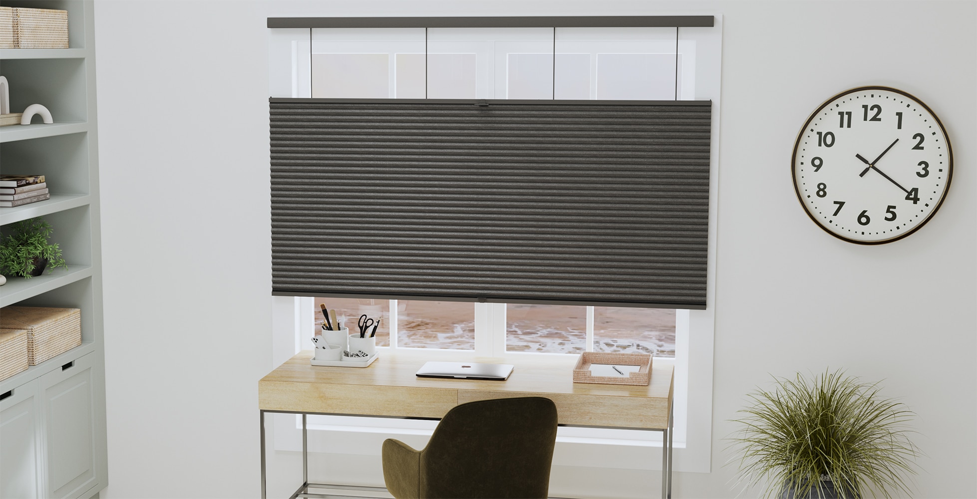 Blinds.com Premium Blackout Cellular Shades are easy to clean, maintain and stack neatly for a clear view of the outdoors. Their sleek design meshes effortlessly with any existing decor style. These shades come with a standard cordless lift and are also available in Top Down / Bottom Up , Day / Night, and motorization upgrades.