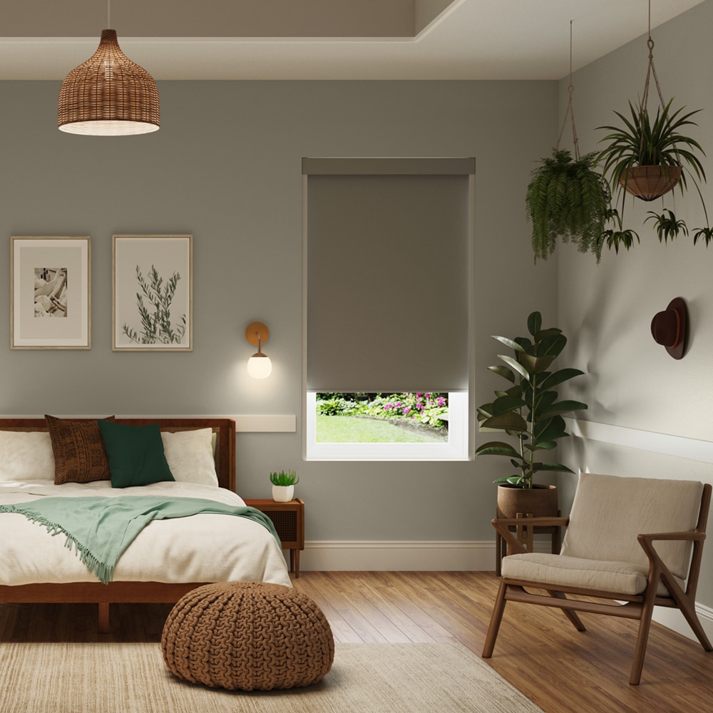 Blinds.com Premium Blackout Roller Shades are perfect for those looking to buy sleek, versatile and stylish window treatments. Available in a variety of blackout fabric options, these shades create a beautiful atmosphere in your room while blocking glare and UV rays from the sun.
