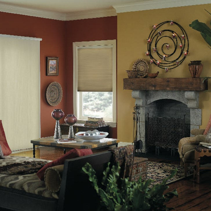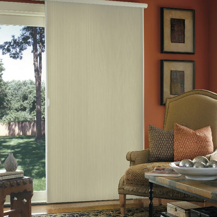 Blinds.com Premium Blackout Vertical Cellular Shades take the benefits of vertical window treatments to a new level. These shades block harsh sun from your large windows or patio doors, and also provide year-round insulation, sound absorption and ultraviolet protection.