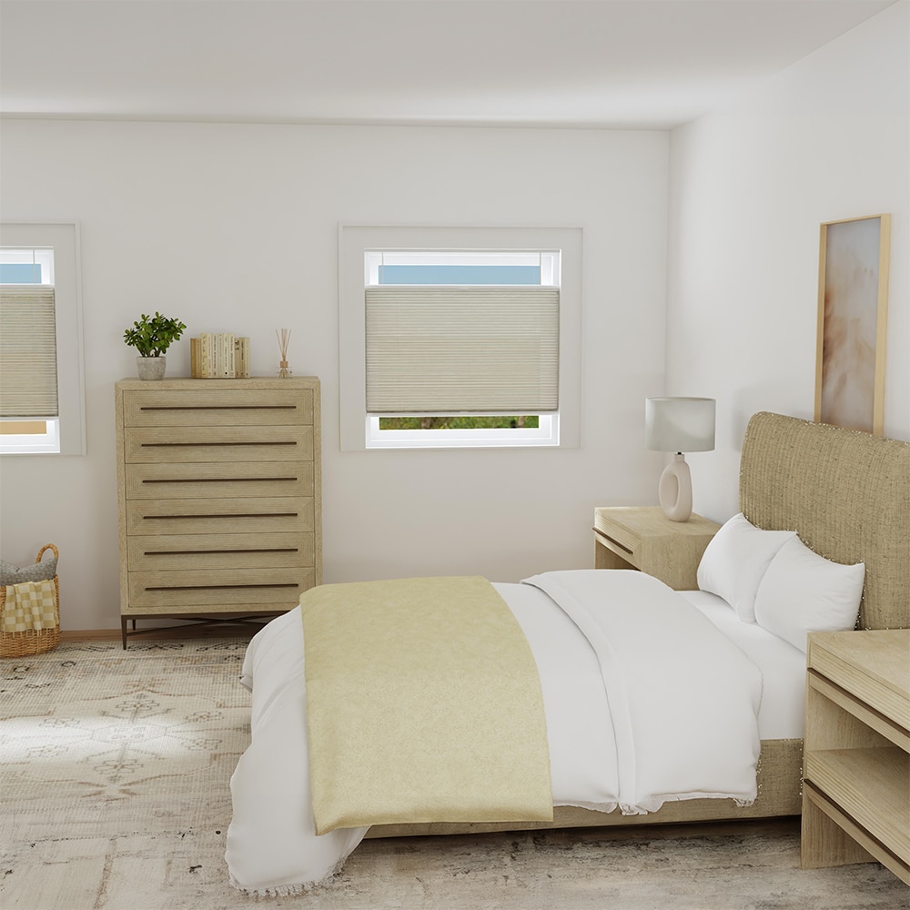Blinds.com Premium Double Cell Cellular Shades marry affordable luxury and functionality into one window treatment. Made of high quality, luxe textiles, these shades amplify your room’s aesthetic while providing increased insulation and light filtration customization.