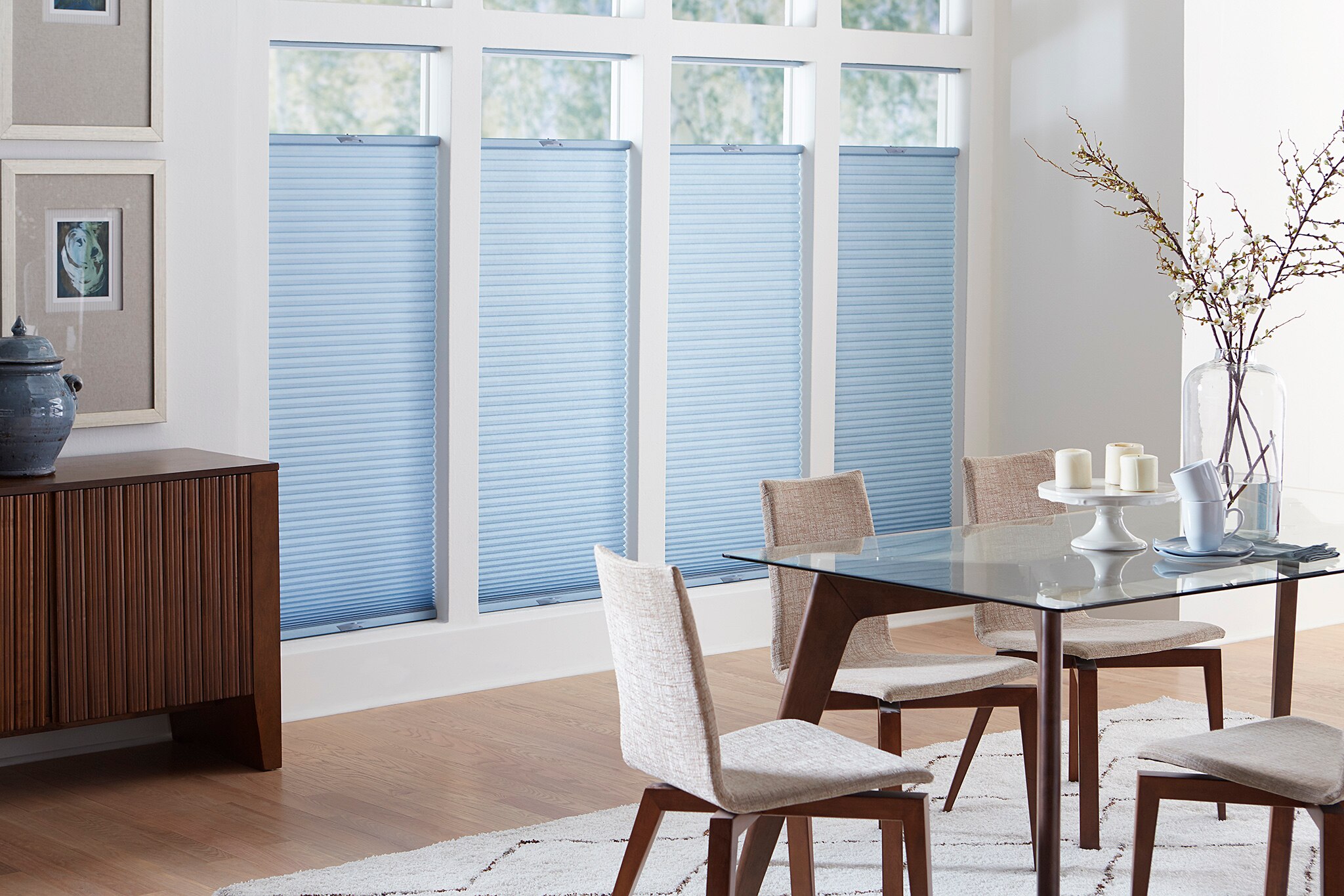 Double or Triple Cell Light-Filtering Cell Shades offer added insulation and are recommended for climates that experience extreme heat or cold.