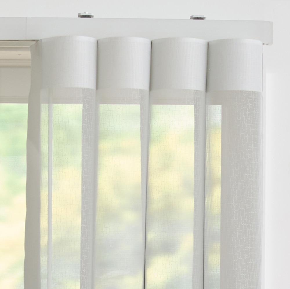 This innovative and uniquely constructed sheer vertical shades offer seamless indoor, outdoor living while providing privacy and light control at the same time. The Blinds.com Premium Vertical Sheer Shades provide soft, luxurious drape-like panels of dual fabric slats that create a magical mix between transparent views and a light filtering or room darkening, solid partition while providing a safe, walk-through option. All in all, a perfect combination of drapes, vertical blinds, and sheer light filtering warmth.
