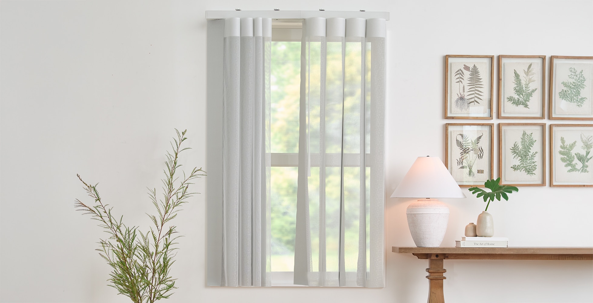 Versatile and sophisticated, the fabric slats, each part sheer and part solid, are masterfully designed to hang in a looped, u-shape so that a simple turn of the wand can change your views from sheer to solid for both privacy and an elegant solution for large windows.