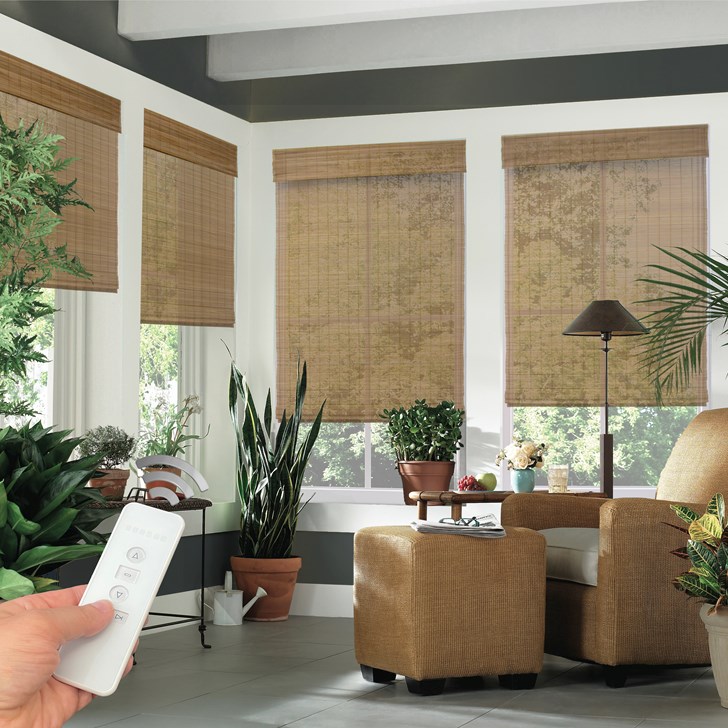 This collection of motorized woven wood shades includes our best-selling, high-quality woods and bamboo which have been curated to include only those that blend well with a wide variety of décor. These unique, natural materials allow you to fully enhance your windows without breaking your budget. Your EZ-A woven wood shades will feature an attractive integrated valance that adds appeal while hiding the lift mechanisms for seamless motorization .