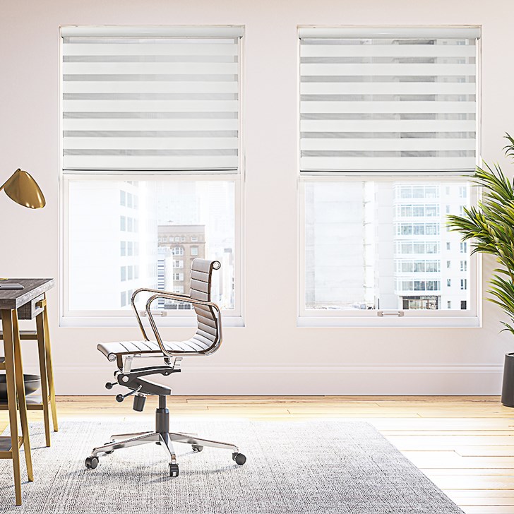 EZ-A Motorized Solar Zebra Shades are an affordable solution to those wanting beautiful, versatile and high-performing widow treatment solutions. Made of alternating sheer and solar fabric bands, these shades let you adjust the band alignment to meet your light filtration needs.