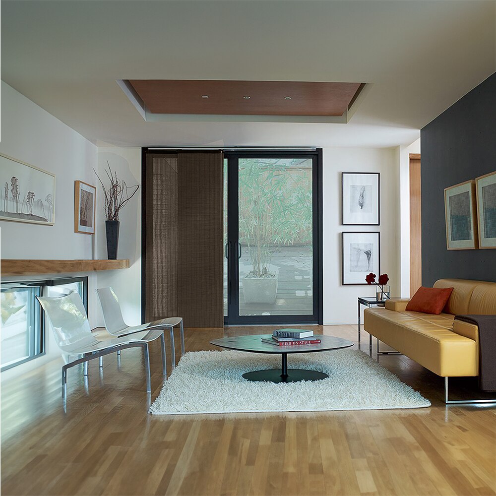 Bring a touch of natural beauty into your home with the LEVOLOR Natural Sliding Panels. Made from a variety of natural fibers such as woven bamboo, tweed, mesh reeds and seagrass, these panels come in a broad assortment of colors and textures to complement any décor style. The panels slide on a track system to maneuver across the window space with ease. Wand control comes as a standard feature and is safer for kids and pets, as well as neater in appearance.