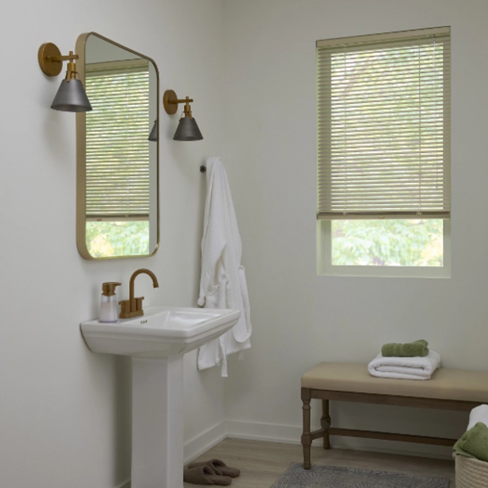 The Riviera™ Select 1 Inch Cordless Mini Blinds are available in 36 of the most popular finishes, including grays and metallics. This expanded collection of metal blinds offers a sleek, streamlined look. Their easy-to-install top brackets make it easy to achieve designer style at an affordable price.
