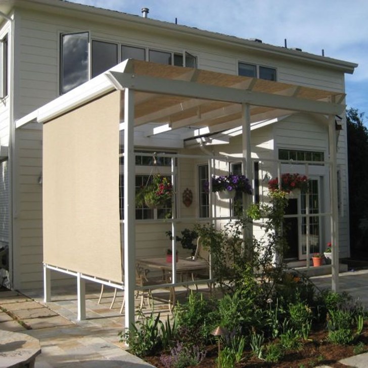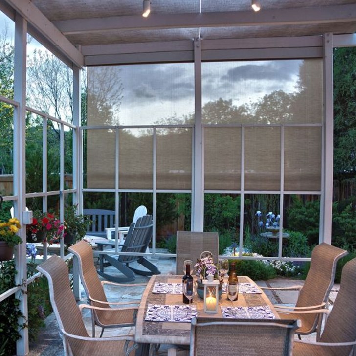 Oasis by Insolroll shades are 100% custom made up to 12’ wide to your dimensions and can be retrofitted to existing covered patios, screen porches, gazebos, and open trellis and pergola structures. Shades can also be designed into new outdoor construction projects. Insolroll premium quality shades are specifically engineered, manufactured and tested for outdoor use and built with the highest quality hardware and fabrics to withstand the outdoor elements.