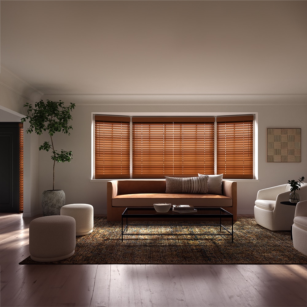 Expansive 2 1/2-inch slats for unobstructed outdoor views.