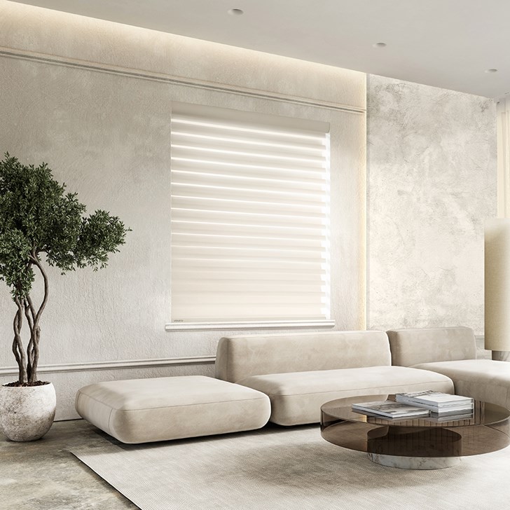 - Performance of a horizontal blind with the elegance of a fabric shade.