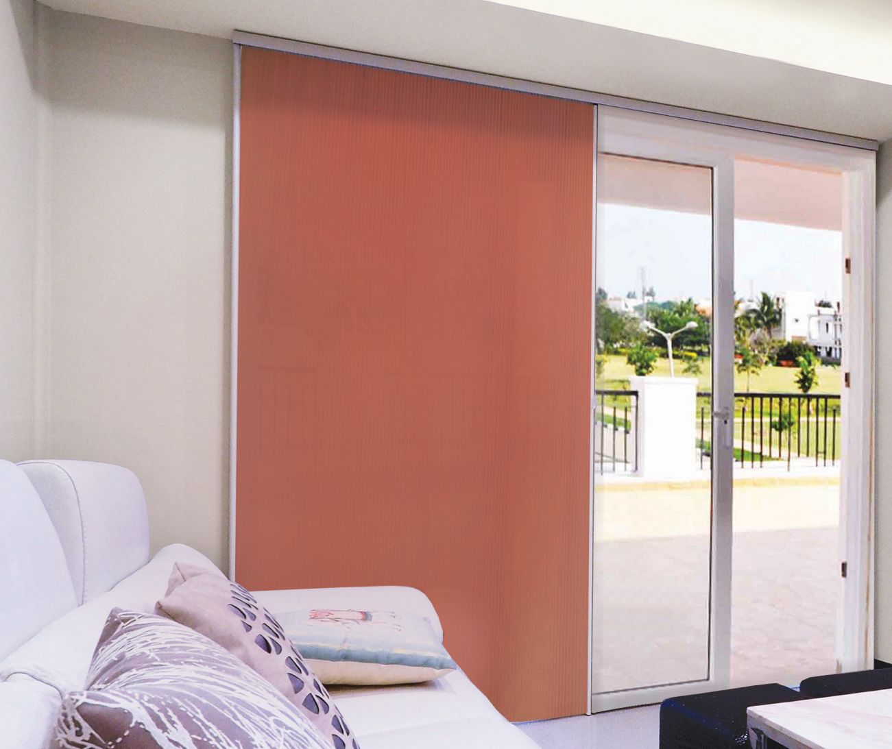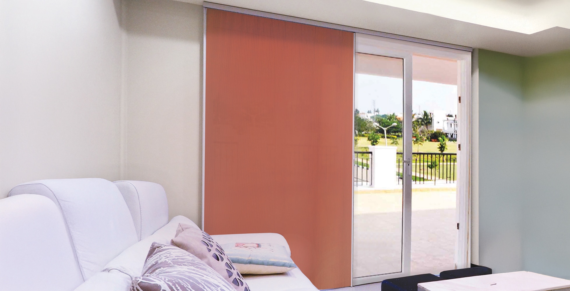 Veneta Designer Light Filtering Vertical Cellular Shades are made from quality fabrics and offered in a variety of colors and patterns. Cellular vertical shades are ideal for large windows and sliding glass doors. They add a layer of insulation to keep the heat and cold out and your interior temperature comfortable – saving you money on utility costs in the long run.
