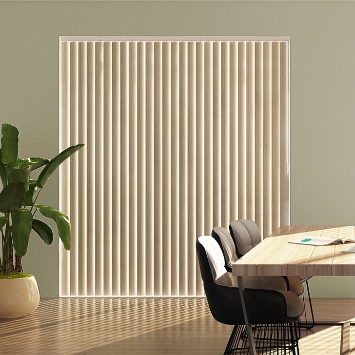 From regular windows to oversized windows and patio doors, Veneta™ Designer Vertical Blinds provide the same performance throughout your home. The stylish, headrail comes in 4 contemporary colors and doesn’t require a valance, making installation even easier. Our wide range of patterns and colors includes select styles that match Veneta™ Designer Faux Wood Blinds. Color collections with a crisp white backing ensure a look that welcomed by Homeowners’ Associations.