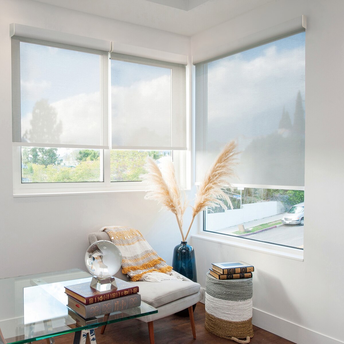Choose from 34 carefully curated solar fabrics spanning a range of openness factors and tones. Finish the look with a minimal no-valance profile, or opt for a curved fascia with a coordinating fabric insert for a designer-grade appearance. Pair with the optional ShadeAuto™ Hub for full smart home control, including scheduling, app access, and voice commands.