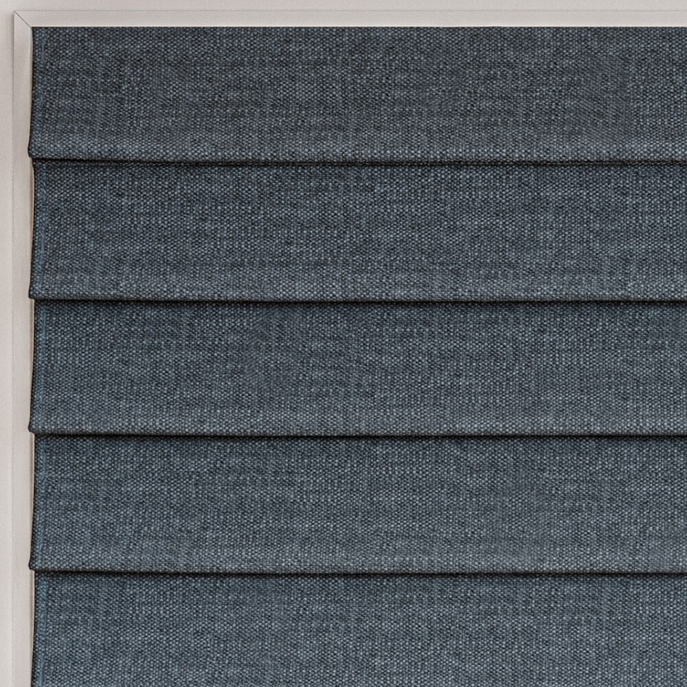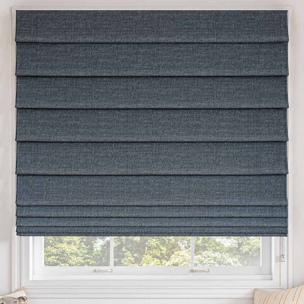 Blinds.com Blackout Roman Shades blend affordability with timeless style. Offering a variety of textures, colors and patterns, these shades complement any decor. The fabric-wrapped wooden headrail provides a seamless appearance, with an optional valance for added drama.
